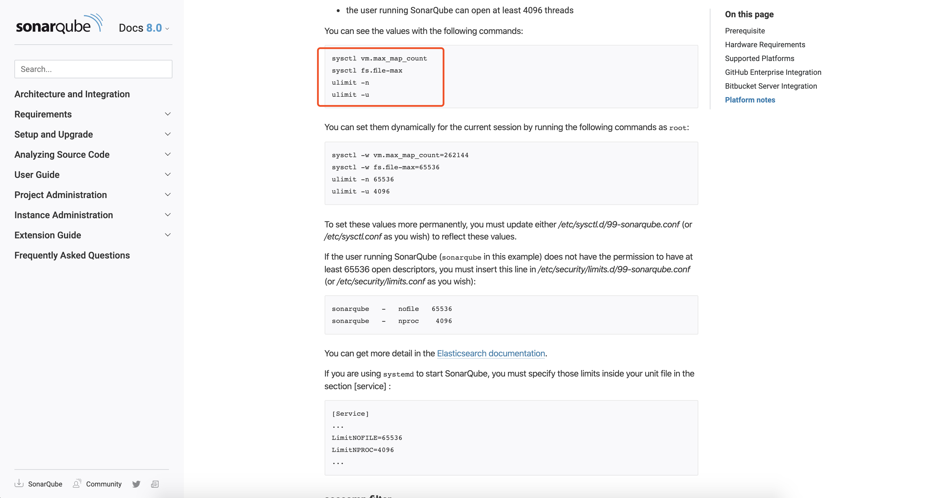 - "sysctl -w vm.max_map_count=524288 && sysctl -w fs.file-max=131072 && ulimit -n 131072 && ulimit -u 8192"